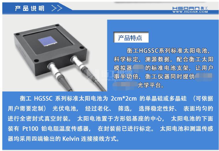 衡工HGSSC系列標(biāo)準(zhǔn)太陽(yáng)電池