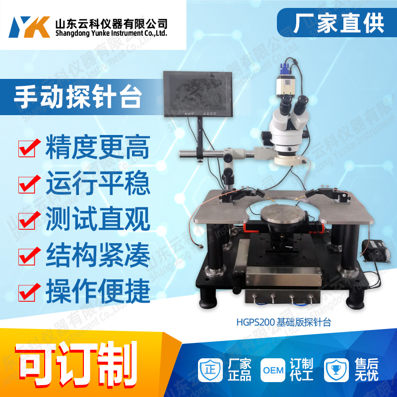 探針臺(tái)主要應(yīng)用于半導(dǎo)體行業(yè)、光電行業(yè)、集成電路以及封裝,復(fù)雜、高速器件的精密電氣測(cè)量的研發(fā),旨在確保質(zhì)量及可靠性,并縮減研發(fā)時(shí)間和器件制造工藝的成本。HGPS200 基礎(chǔ)版探針臺(tái)是一款配置齊全、整體性好、經(jīng)濟(jì)實(shí)惠的手動(dòng)探針臺(tái)。適用于晶圓廠、研究所、高校等對(duì)IGBT、FRD、高壓大電流測(cè)試、太陽(yáng)能電池測(cè)試、二極管晶體管測(cè)試、背電極測(cè)試。