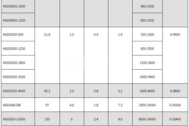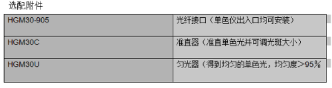 HGISW / HGISU系列單色儀/光譜儀光柵與技術(shù)指標(biāo)對(duì)照表