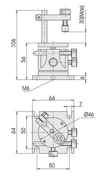 整體式設(shè)計,結(jié)構(gòu)緊湊,可提供三維角度調(diào)整,調(diào)整螺桿為M6x0.25超細(xì)牙螺桿,彈簧復(fù)位