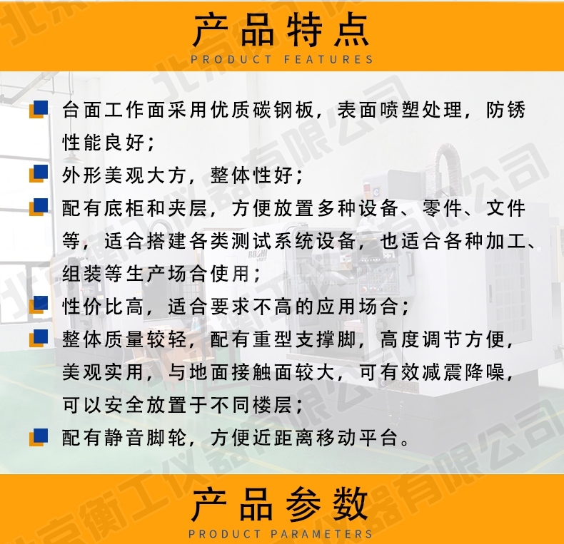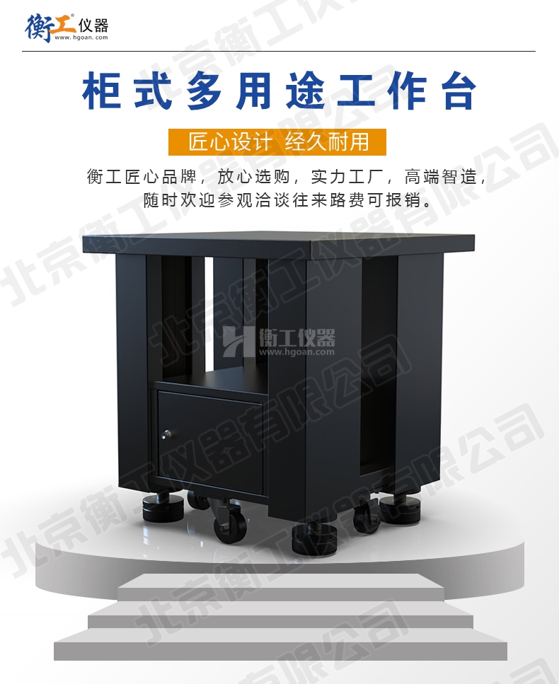 柜式多用途工作臺(tái):臺(tái)面工作面采用優(yōu)質(zhì)碳鋼板,表面噴塑處理,防銹性能良好,外形美觀大方,整體性好,配有底柜和夾層,適合搭建各類測(cè)試系統(tǒng)設(shè)備,也適合加工組裝等生產(chǎn)場(chǎng)合使用;整體質(zhì)量較輕調(diào)節(jié)方便,美觀實(shí)用