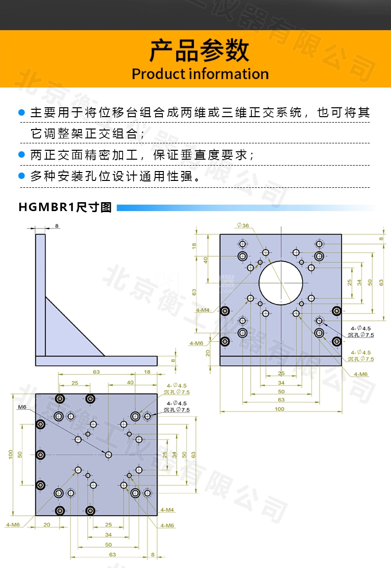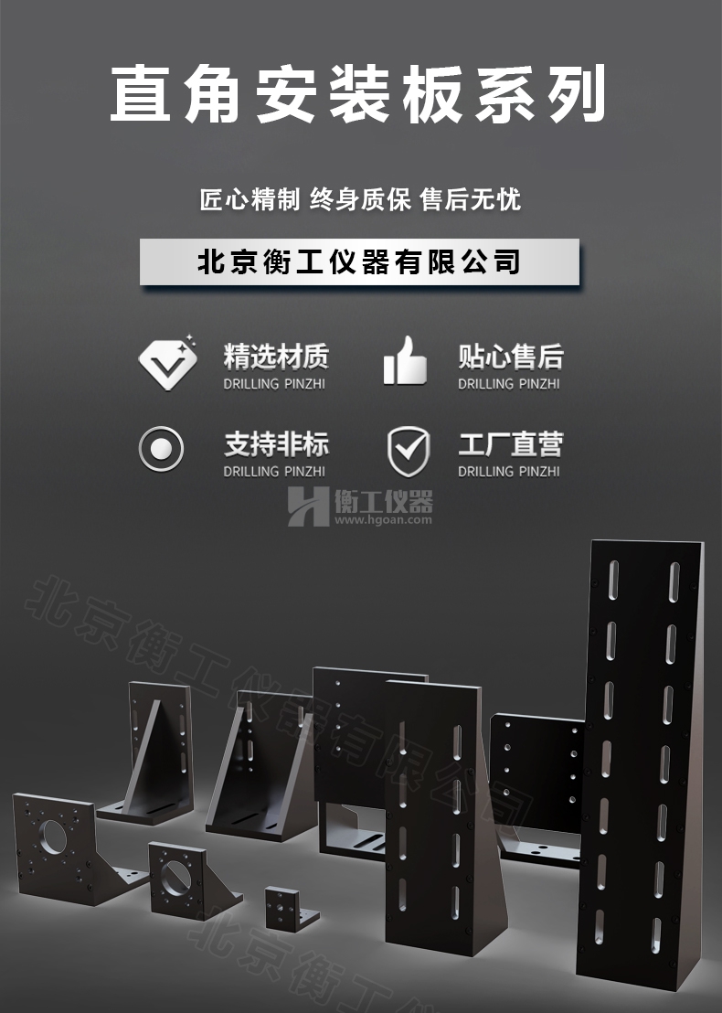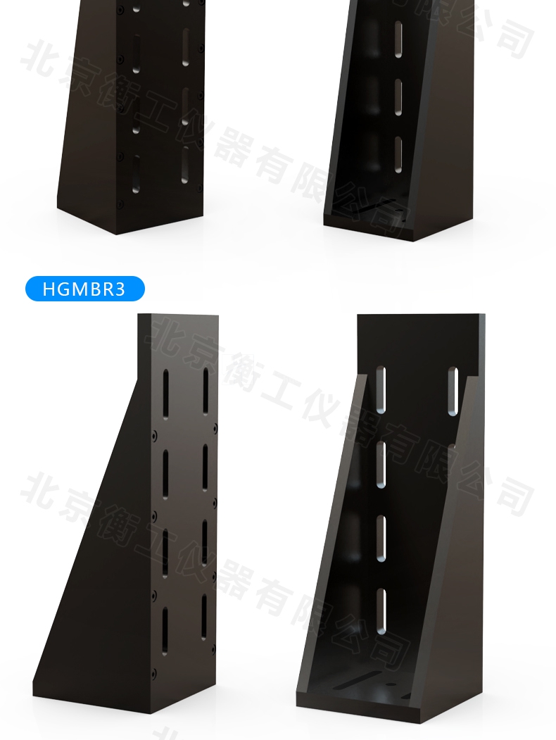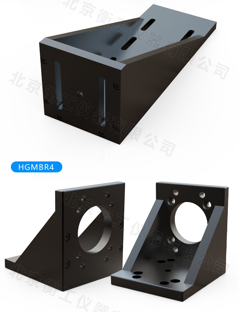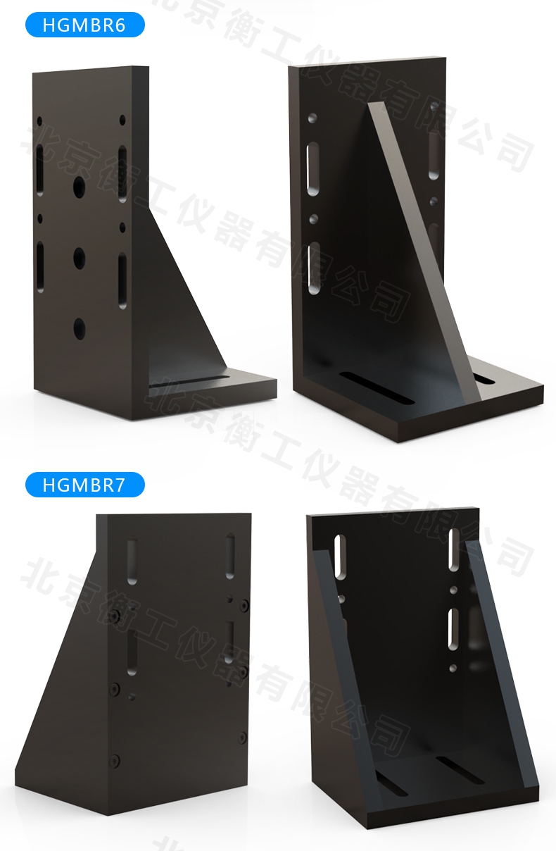 HGMBR系列直角安裝板特點:主要用于將位移臺組合成兩維或三維正交系統(tǒng),也可將其它調(diào)整架正交組合,兩正交面精密加工,保證垂直度要求,多種安裝孔位設(shè)計通用性強(qiáng)。