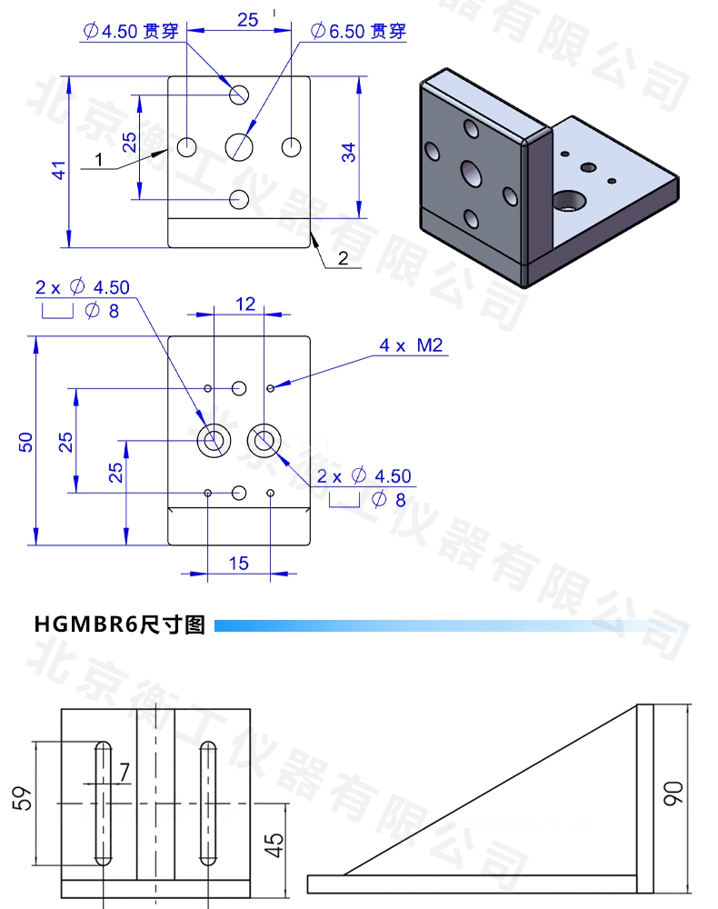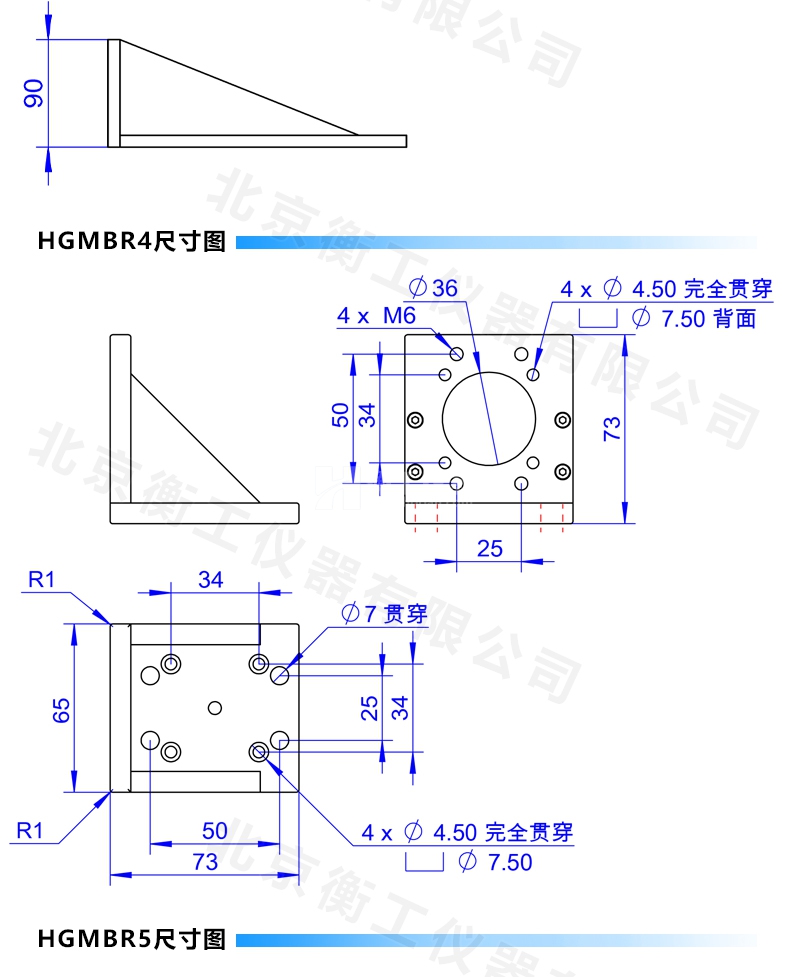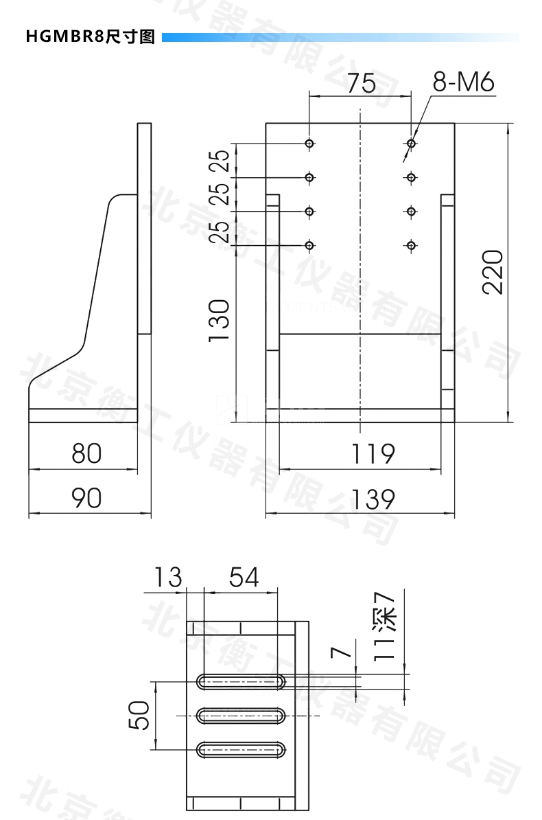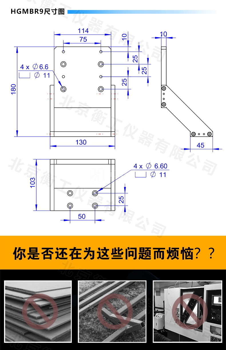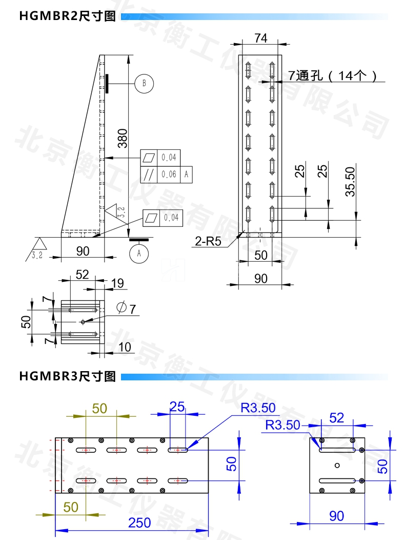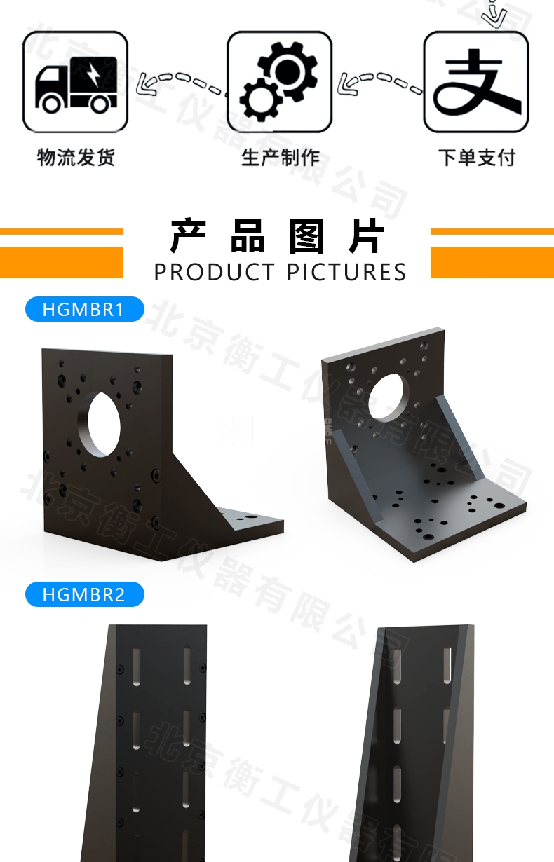 HGMBR系列直角安裝板特點:主要用于將位移臺組合成兩維或三維正交系統(tǒng),也可將其它調(diào)整架正交組合,兩正交面精密加工,保證垂直度要求,多種安裝孔位設(shè)計通用性強(qiáng)。