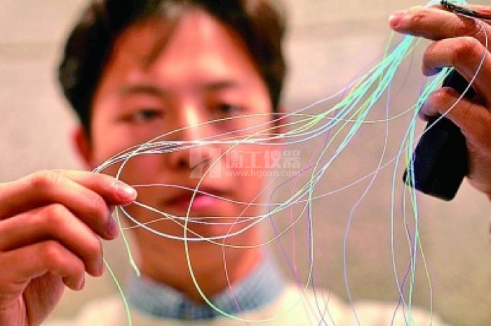 復旦大學科研人員展示用于編織的發(fā)光纖維。新華社發(fā)