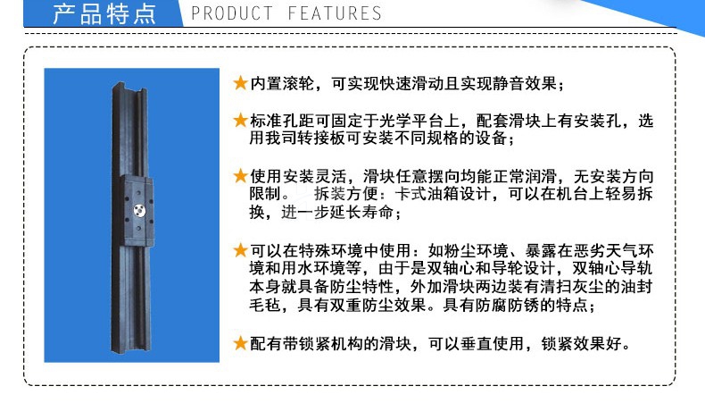 光學滑軌高速雙軸心滾輪導軌帶鎖緊機構(gòu)刻度滑塊光具座載物臺軌道