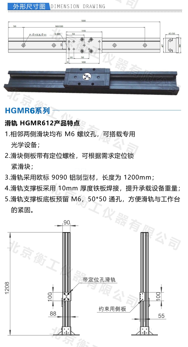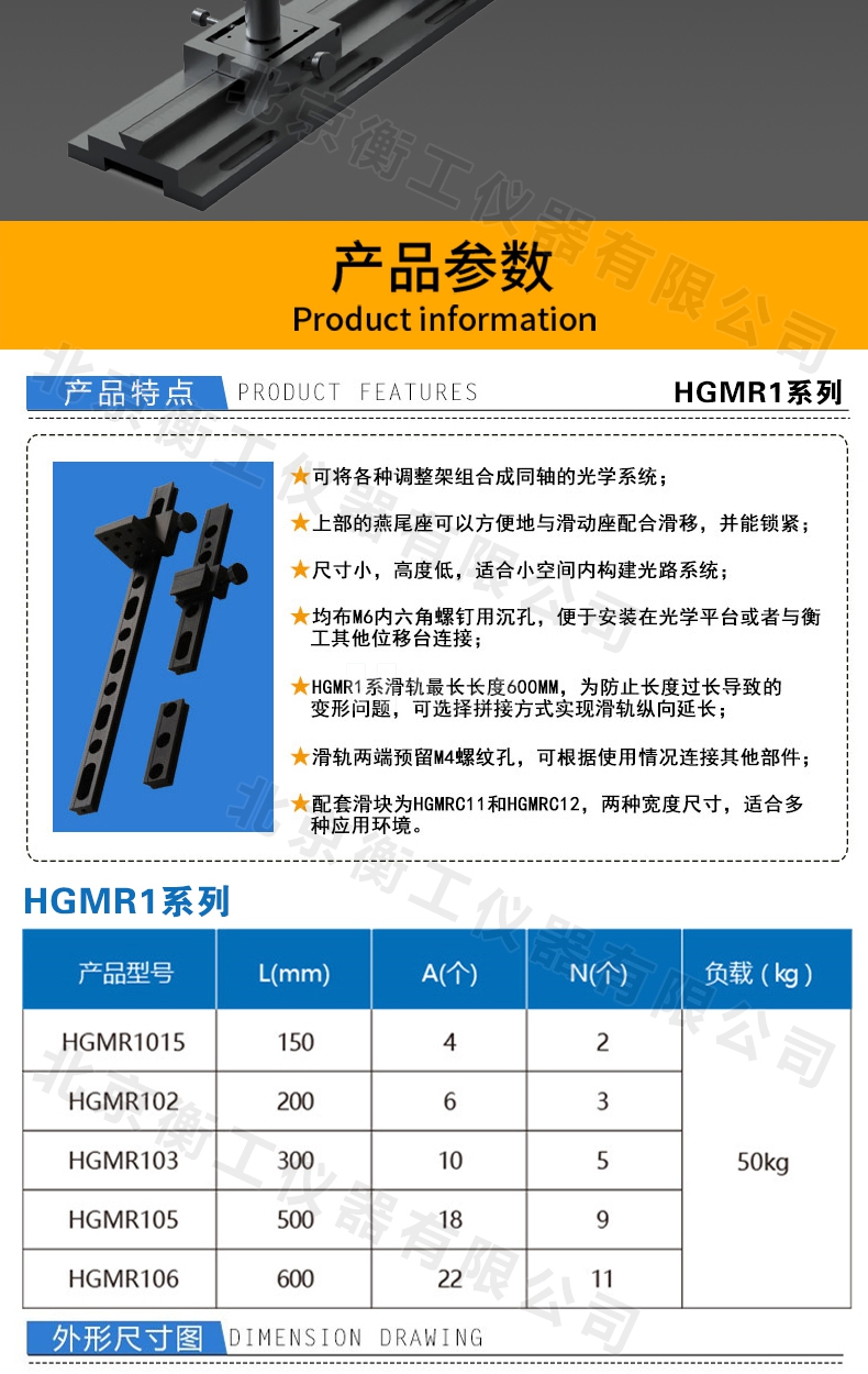 衡工HGMR系列光學(xué)滑軌 實(shí)驗(yàn)直線運(yùn)動(dòng)導(dǎo)軌 滑動(dòng)座載物滑軌載物臺