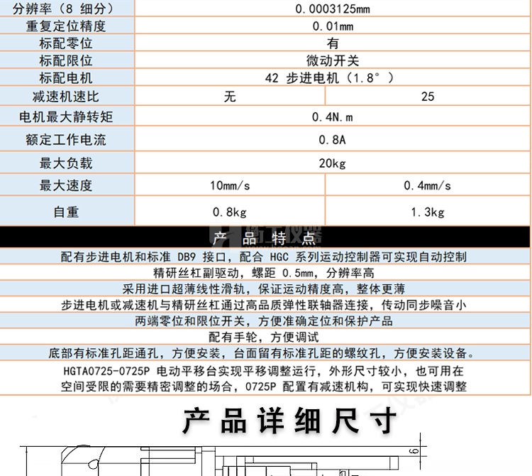 精密光學(xué)電動(dòng)慢速位移臺(tái)多維電動(dòng)手動(dòng)組合微型實(shí)驗(yàn)滑臺(tái)微調(diào)工作臺(tái)HGTA0725
