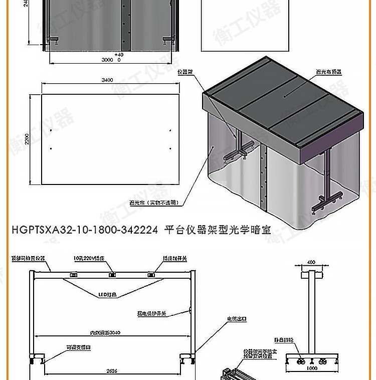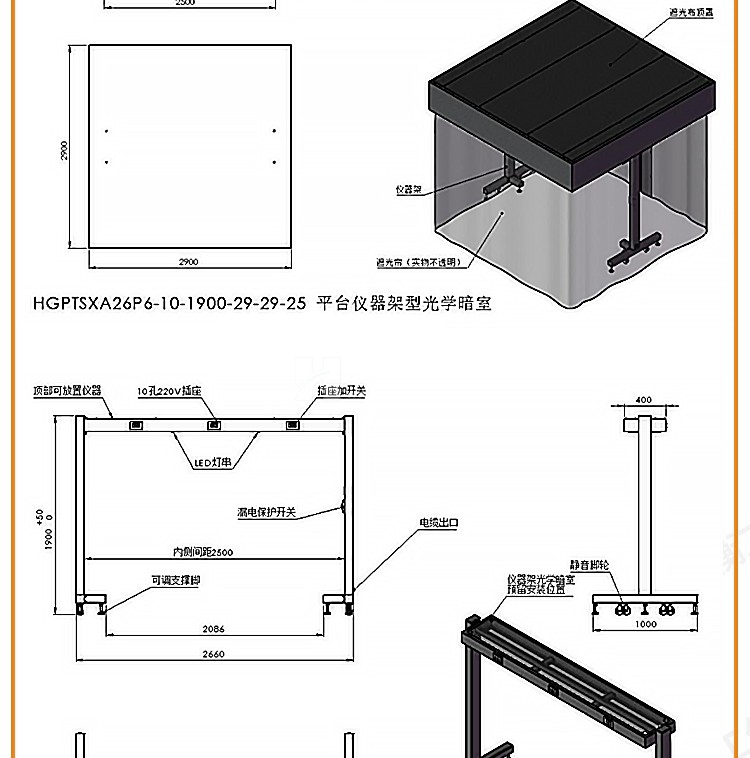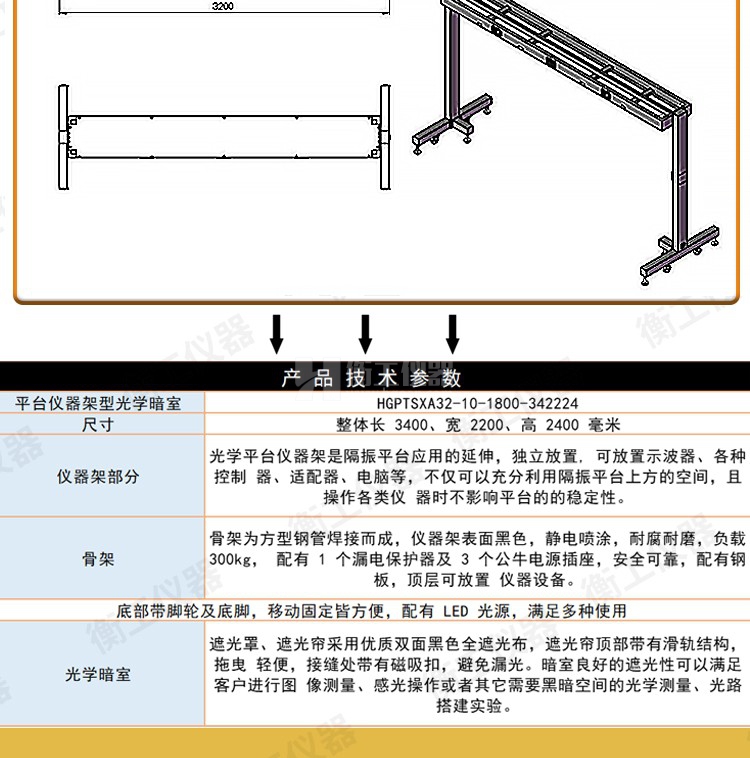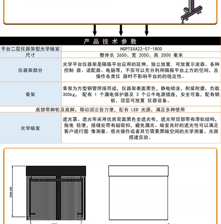 光學(xué)平臺(tái)儀器架可移動(dòng)器材兩層放置設(shè)備遮光罩研究室隔振工作臺(tái)架
