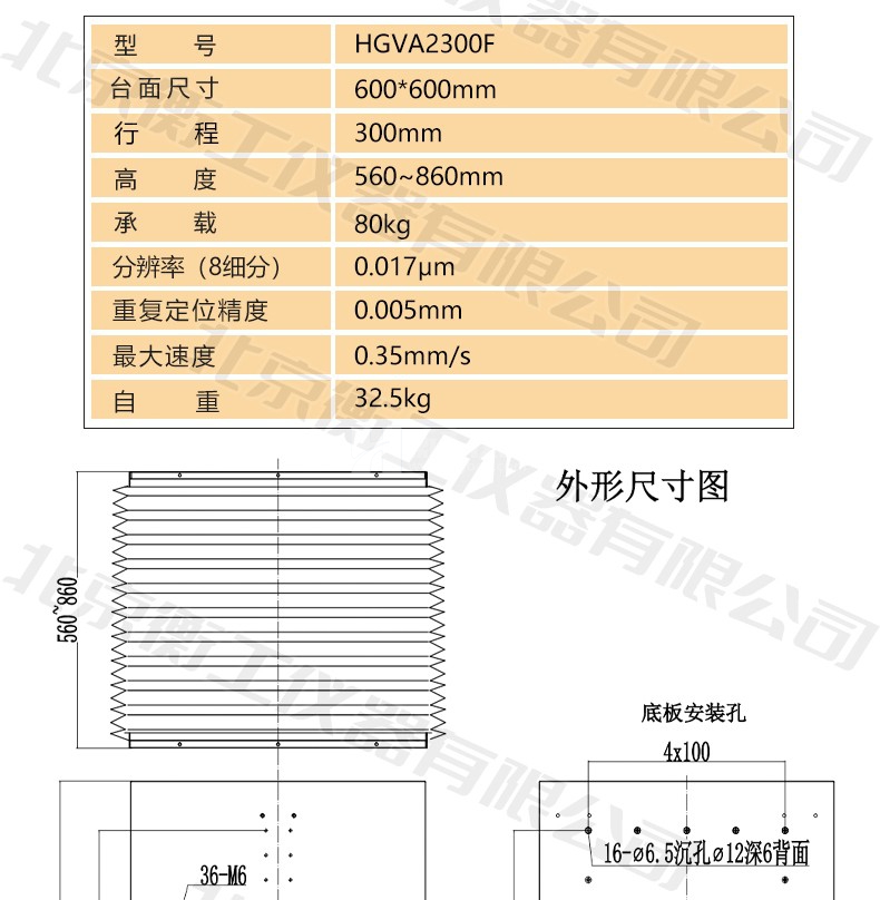 衡工HGVA2300F精密大行程升降臺(tái)豎直位移臺(tái)高精度電動(dòng)升降工作臺(tái)重載防塵罩平臺(tái)