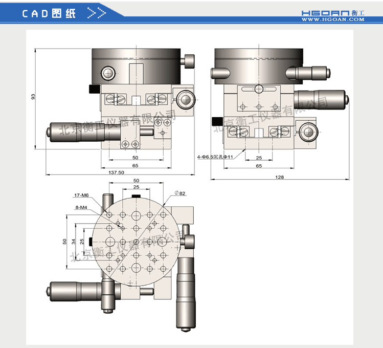 ● 上下部均有標準孔距的連接孔,方便與其他位移臺連接,組成多維移動臺。